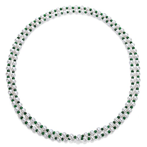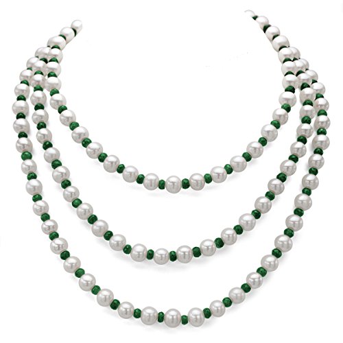 La Regis Jewelry - عقد من لؤلؤ المياه العذبة الابيض المستزرع 7-7.5 ملم مع 4-5 حجر الزمرد الاخضر الكريم بطول 50 انش للنساء