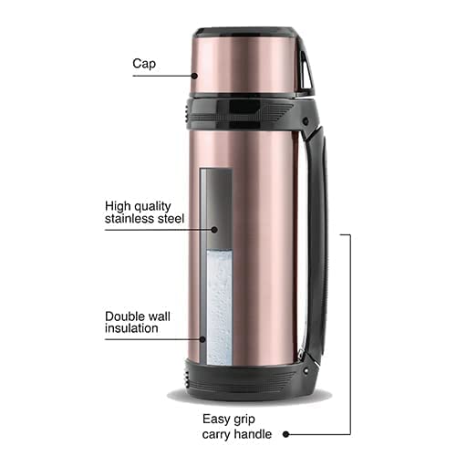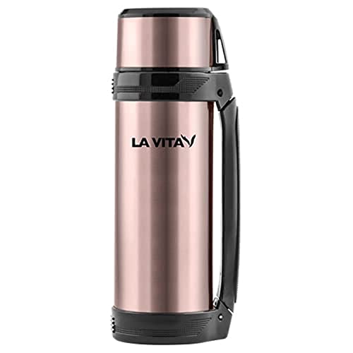La Vita - ترمس حراري ستانلس ستيل 1.5 لتر مع مقبض وحزام ديلوكس من لافيتا، وردي