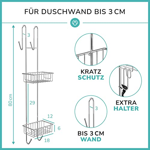 - أبعاد مثالية 100% - تعليق عميق بفضل ارتفاع 80 سم، تثبيت آمن بفضل السلال ذات الجدران العالية والشبكية القريبة، الاستخدام الشامل بفضل دعامات الحائط التي يصل طولها إلى 3 سم، رف الدش لاكفيلد للتعليق لا يمانع في أي شيء