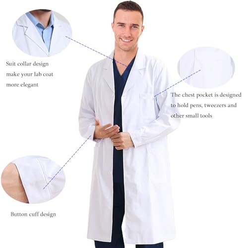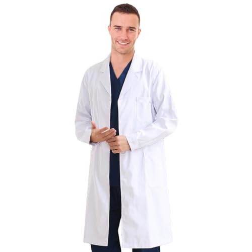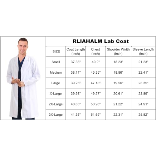 RLIAHALM - معطف مختبر للرجال والنساء جاكيت طبيب باكمام طويلة للعلماء في المدرسة يوم العمل معطف الاسنان، ابيض، M