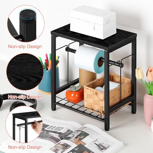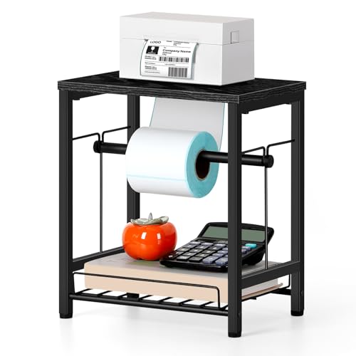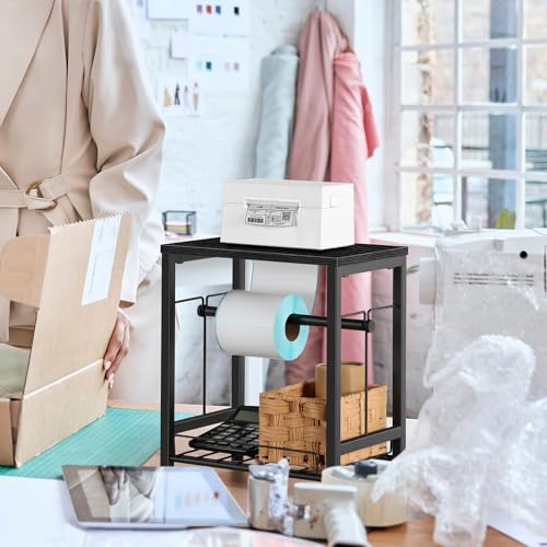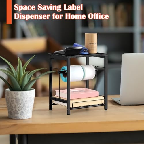smusei - حامل ملصقات للبكرات والملصقات القابلة للطي بالمروحة، حامل ملصقات طابعة حرارية خشبية، حامل ملصقات الشحن، موزع لبكرة الملصقات للمنزل والمكتب والشركات الصغيرة - لون أسود