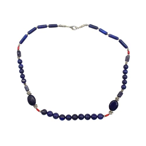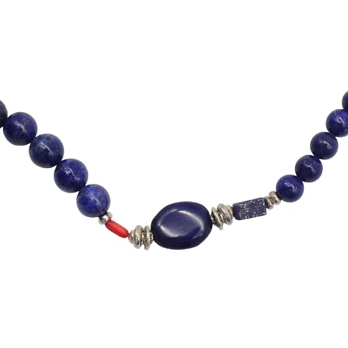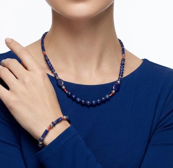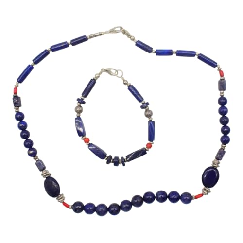 Indian Stones MA - طقم عقد وانسيال هندي فاخر من الفضة المخلوطة بالنحاس اقل من العيار مرصع بأحجار طبيعية كريمة من لابس لازولي والمرجان، قطعتين - ازرق احمر Set-1-A