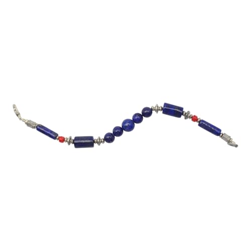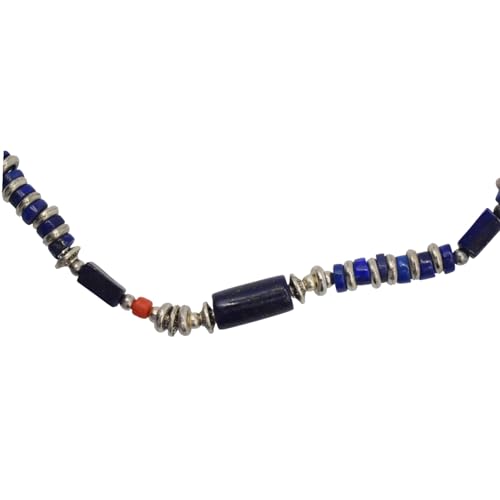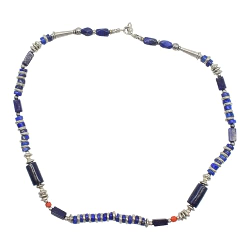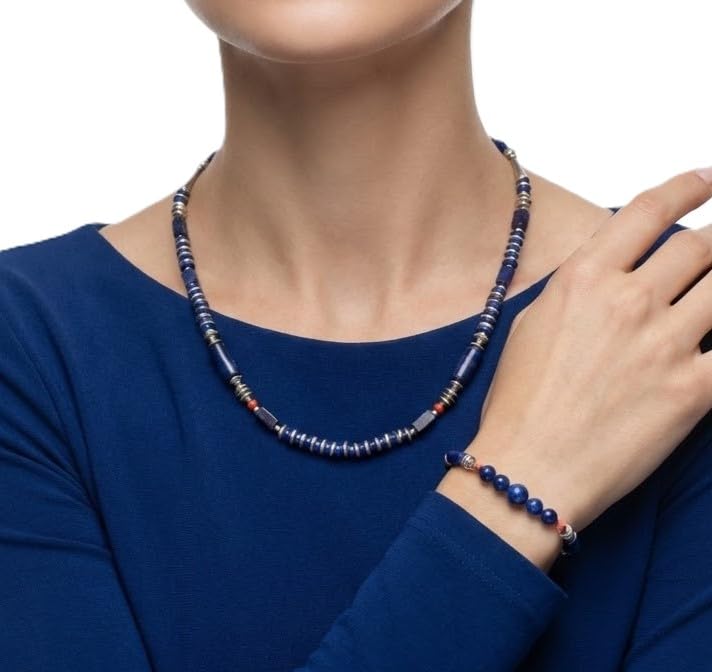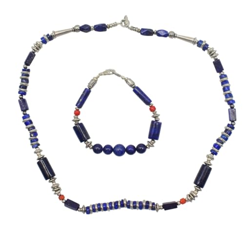Indian Stones MA - طقم عقد وانسيال هندي فاخر من الفضة المخلوطة بالنحاس اقل من العيار مرصع بأحجار طبيعية كريمة من لابس لازولي والمرجان، قطعتين - ازرق احمر Set-1-D