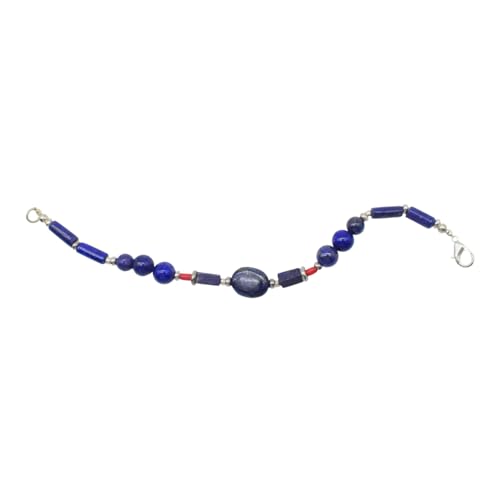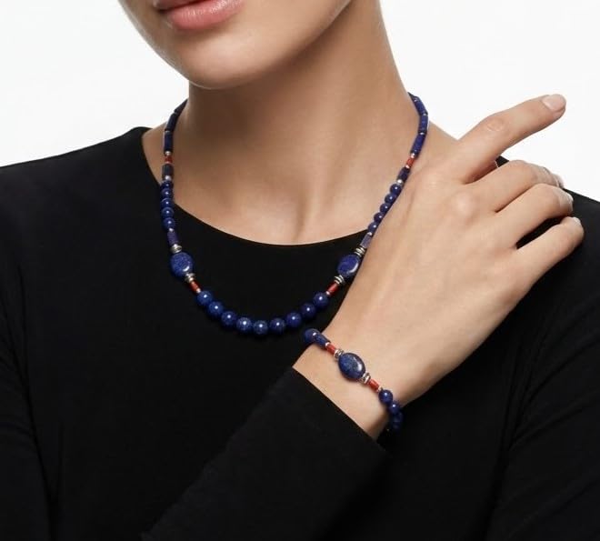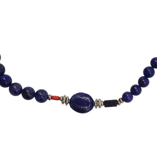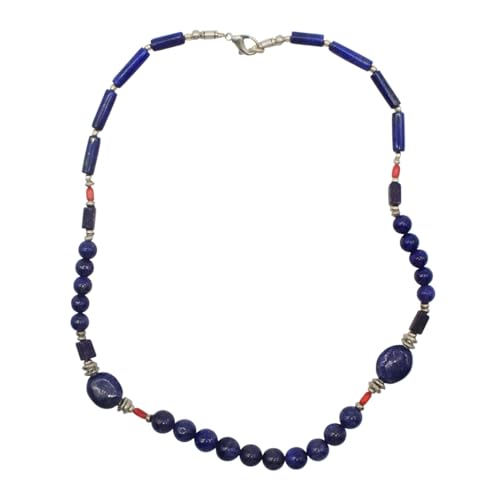 Indian Stones MA - طقم عقد وانسيال هندي فاخر من الفضة المخلوطة بالنحاس اقل من العيار مرصع بأحجار طبيعية كريمة من لابس لازولي والمرجان، قطعتين - ازرق احمر Set-1-K