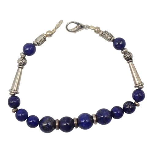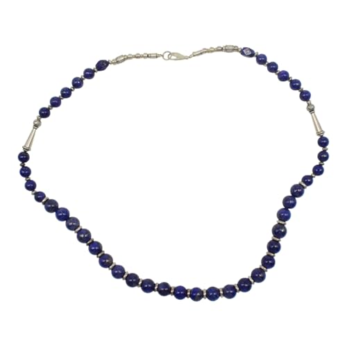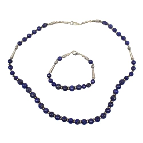 Indian Stones MA - طقم عقد وانسيال هندي فاخر من الفضة المخلوطة بالنحاس اقل من العيار مرصع بأحجار طبيعية كريمة من لابس لازولي، قطعتين - أزرق Set-3-G
