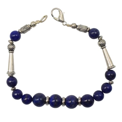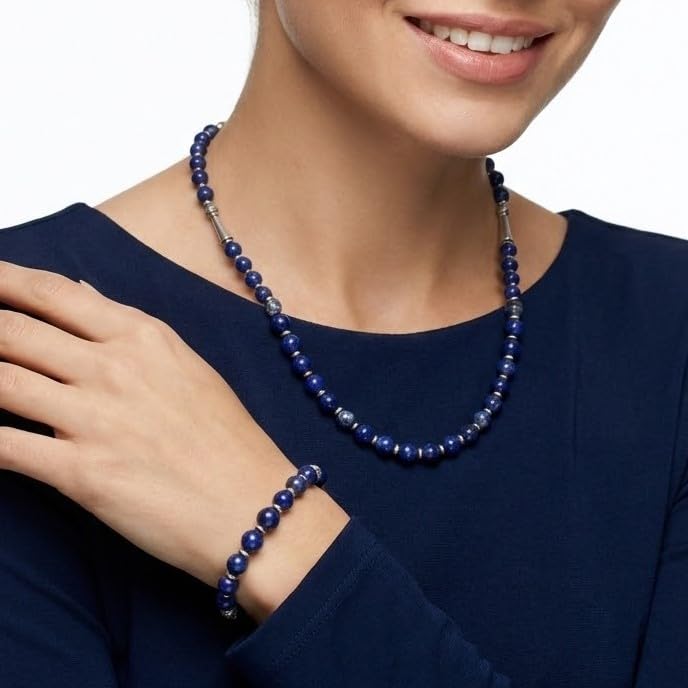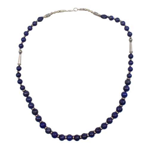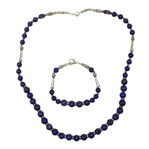 Indian Stones MA - طقم عقد وانسيال هندي فاخر من الفضة المخلوطة بالنحاس اقل من العيار مرصع بأحجار طبيعية كريمة من لابس لازولي، قطعتين - أزرق Set-3-I