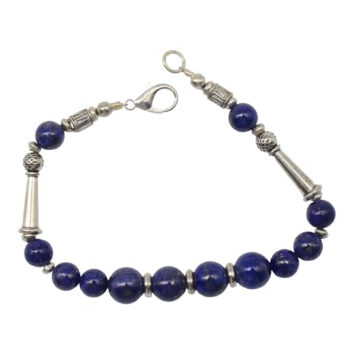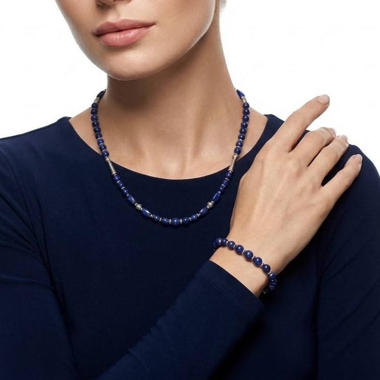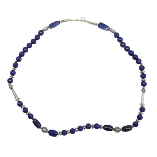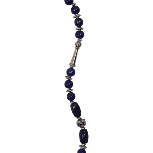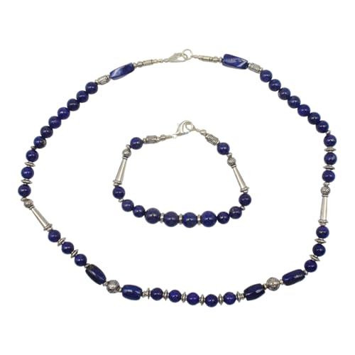 Indian Stones MA - طقم عقد وانسيال هندي فاخر من الفضة المخلوطة بالنحاس اقل من العيار مرصع بأحجار طبيعية كريمة من لابس لازولي، قطعتين - أزرق Set-3-K
