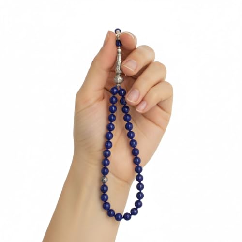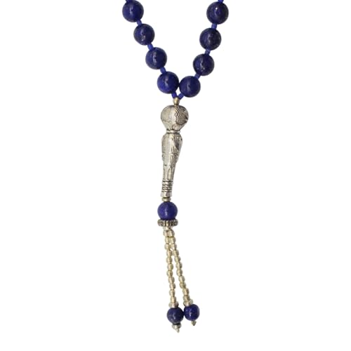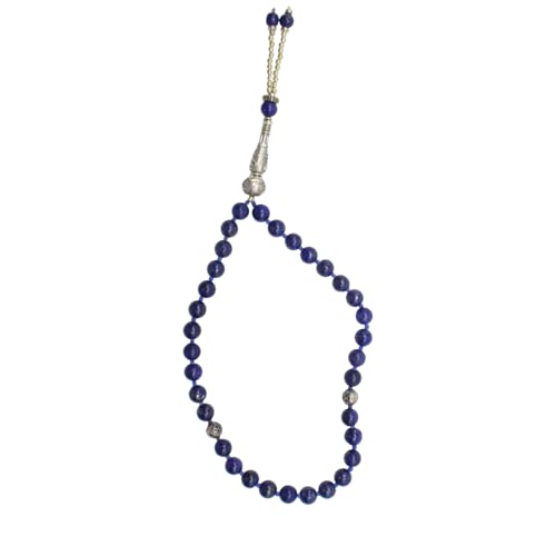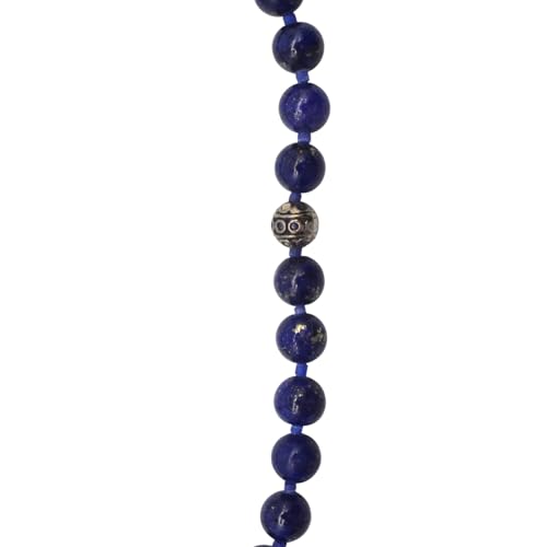Indian Stones MA - سبحة من الفضة المخلوطة بالنحاس اقل من العيار بأحجار طبيعية كريمة من لابس لازولي - أزرق