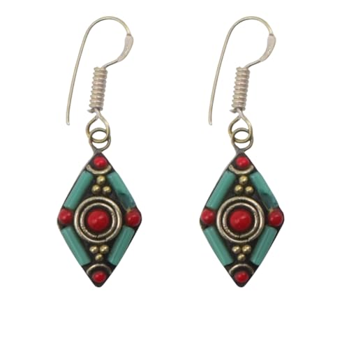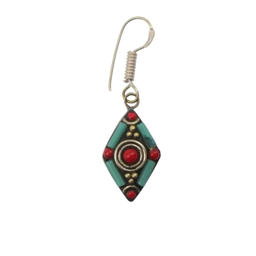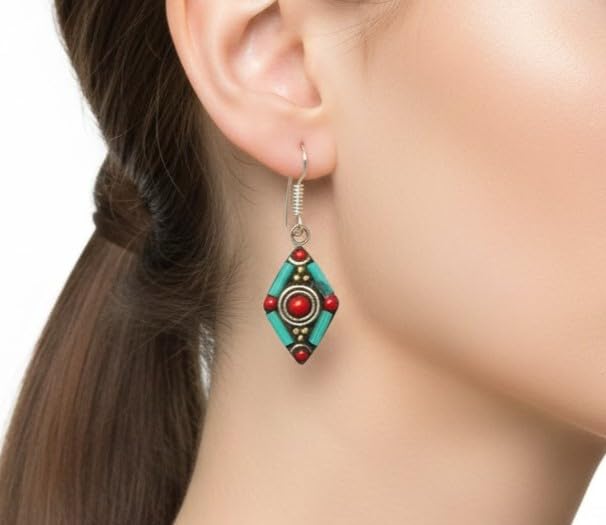 Indian Stones MA - حلق حريمي فاخر من الفضة المخلوطة بالنحاس اقل من العيار مرصع بأحجار طبيعية كريمة من لابس لازولي والمرجان