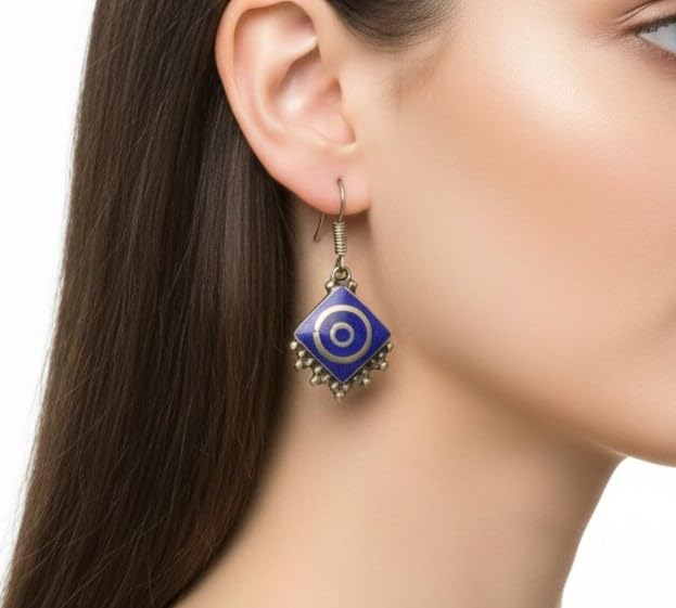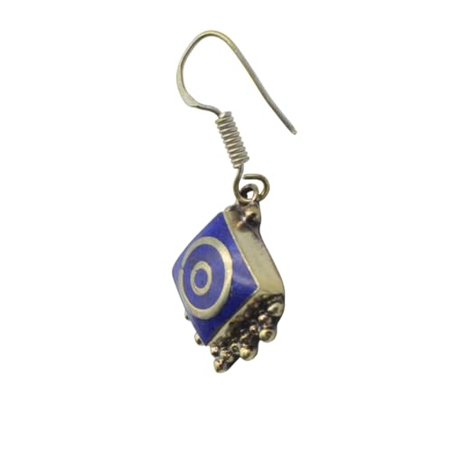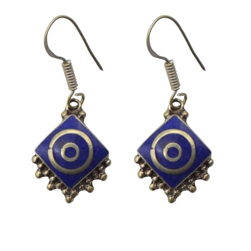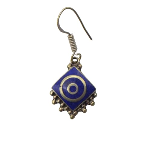 Indian Stones MA - حلق حريمي فاخر من الفضة المخلوطة بالنحاس اقل من العيار مرصع بأحجار طبيعية كريمة من لابس لازولي - أزرق E4