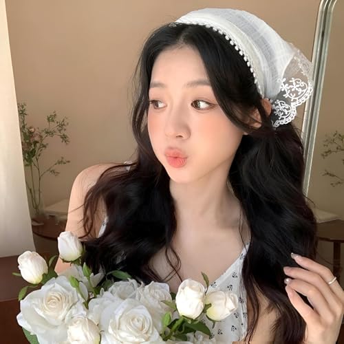 Generic - باندانا دانتيل - وشاح راس بتصميم رعوي فرنسي انيق للنساء والفتيات، لفافة شعر مثلثة مثالية لتصفيفات الشعر الطويل، غطاء ناعم جيد التهوية مثالي للارتداء اليومي وسحر الشباب (قطعة واحدة موديل 2)