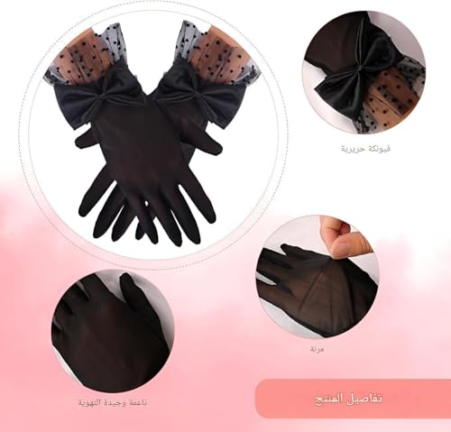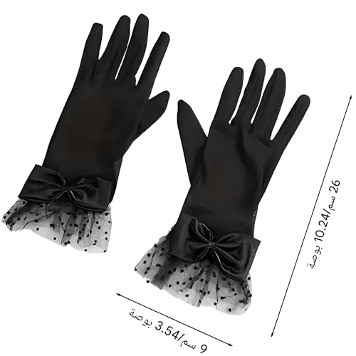 Generic - قفازات دانتيل - اكسسوارات أنيقة لحفلات الزفاف وحفلات الشاي مع فيونكة لحفلات الزفاف والحفلات الراقصة والمناسبات الخاصة
