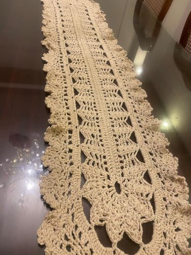 Generic - مفرش دانتيل مخرم بنمط كلاسيكي، كريمي اللون، مصنوع من القطن _ مفرشهاندميد بخيوط الغزل الطول متر ونص
