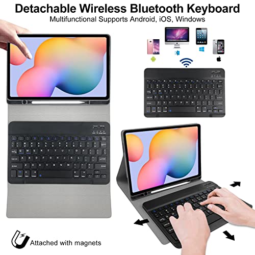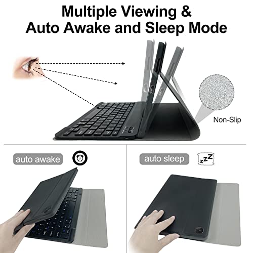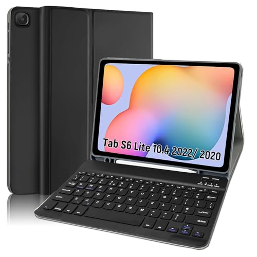 Lachesis - غطاء كيبورد لجهاز سامسونج جالكسي تاب S6 لايت 10.4 بوصة من لاتشيسيس SM-P610/P615/P613/P619 2020/2022 جلدي قابل للطي مع بلوتوث مغناطيسي للفصل حامل قلم اس أسود بلاستيك