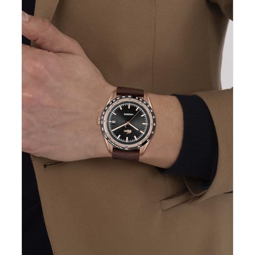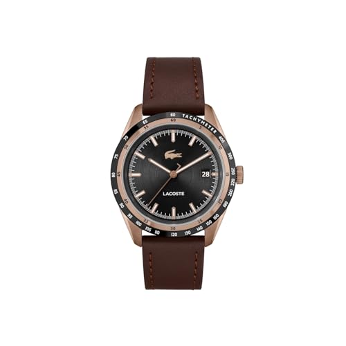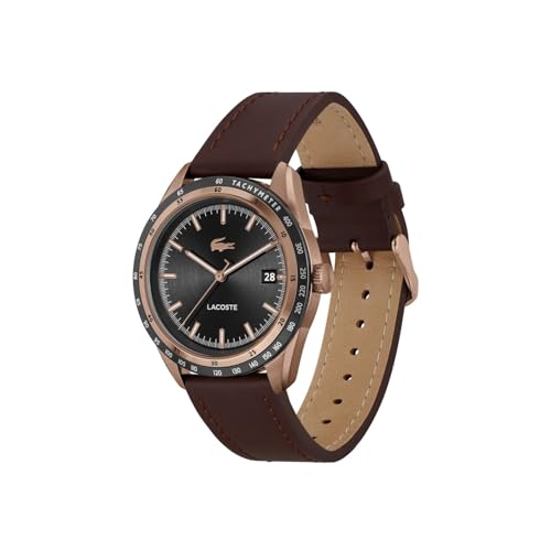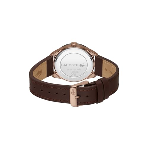 Lacoste - ساعة ايفريت بلا بمينا وسوار جلدي بني للرجال من لاكوست - 2011293