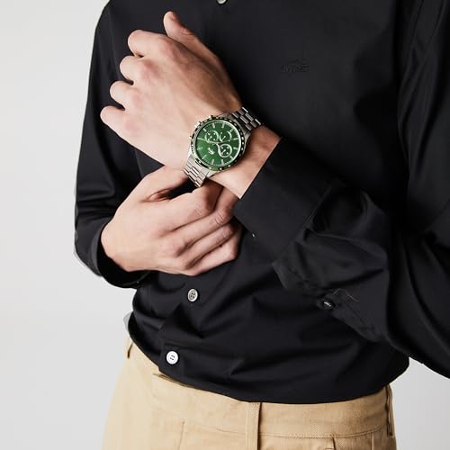 Lacoste - ساعة بوسطن كوارتز بسوار من الستانلس ستيل للرجال من لاكوست، فضي، 20 (الموديل: 2011080)