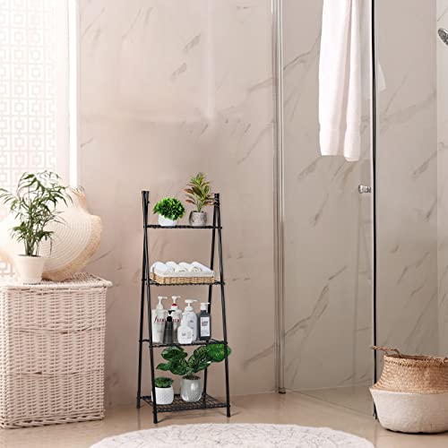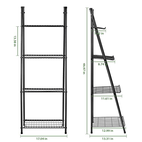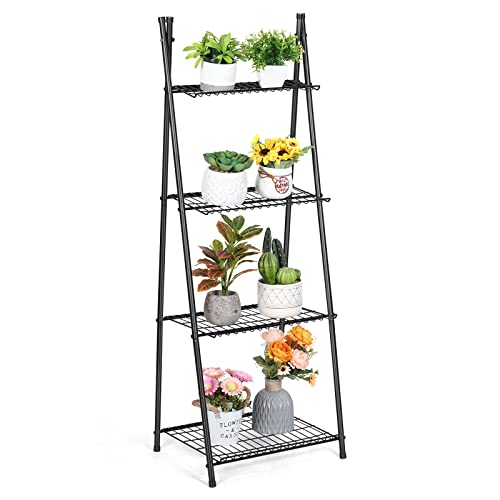 HEOMU - حامل نباتات على شكل سلم من 4 طبقات، رف حامل معدني للنباتات والزهور، رف تخزين داخلي وخارجي للمنزل والفناء والحديقة والبلكونة، حامل منظم للنباتات