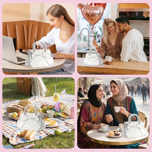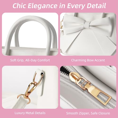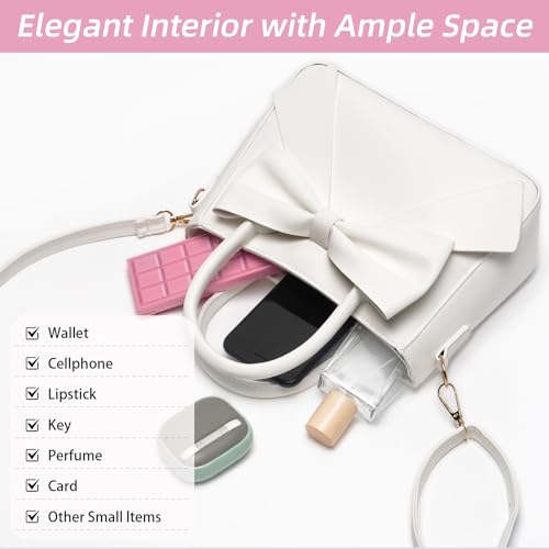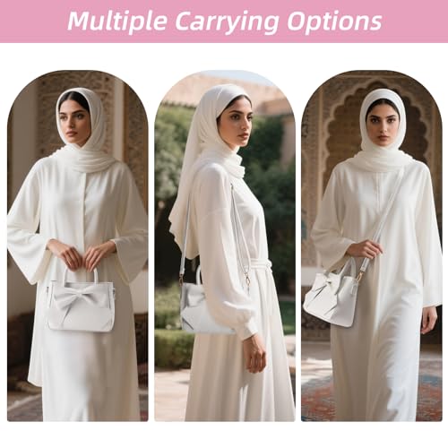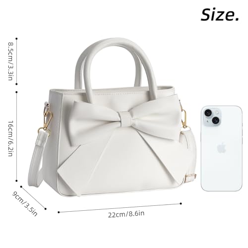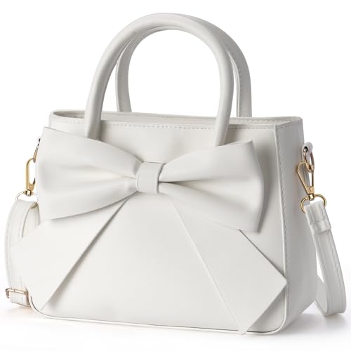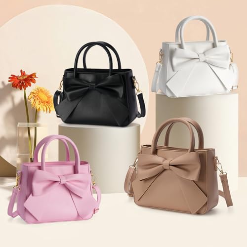 DerHutzucker - شنطة يد للنساء، شنطة كروس من الجلد الصناعي بلون وردي مع فيونكة مزخرفة كبيرة، شنطة بأحزمة بيد علوية