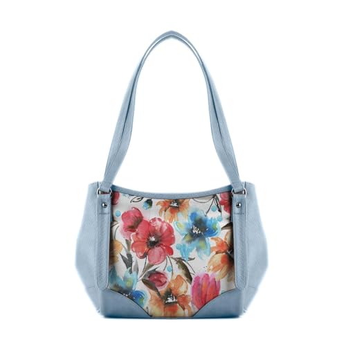 Generic - شنطة يد كبيرة توت من الجلد بطبعة زهور للنساء، لون أزرق فاتح مع نقشة متعددة الألوان