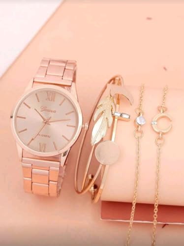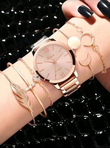Generic - ساعة كوارتز للنساء و5 قطع سوار - ذهبي وردي