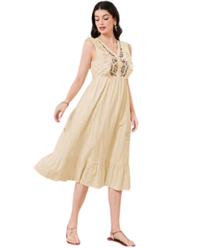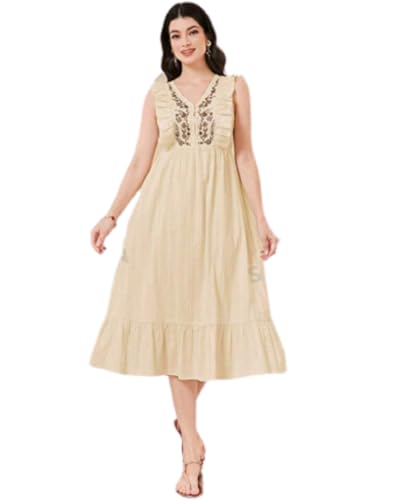 Generic - فستان ليدي قطن 100% مطرز لون أصفر فاتح نسائي انيق
