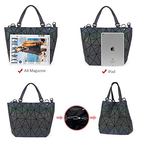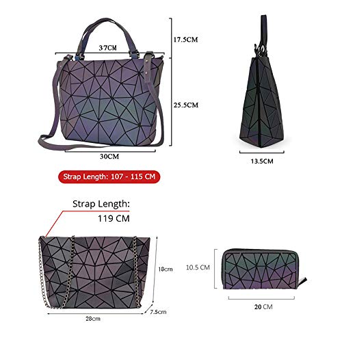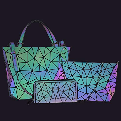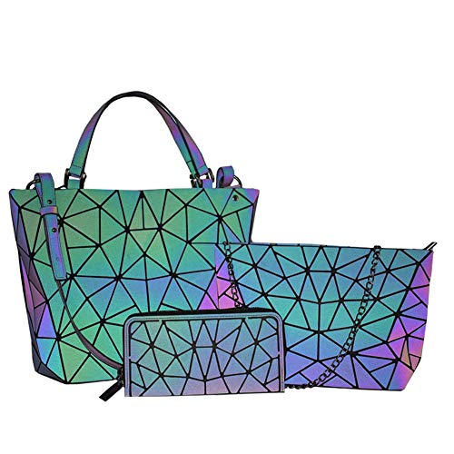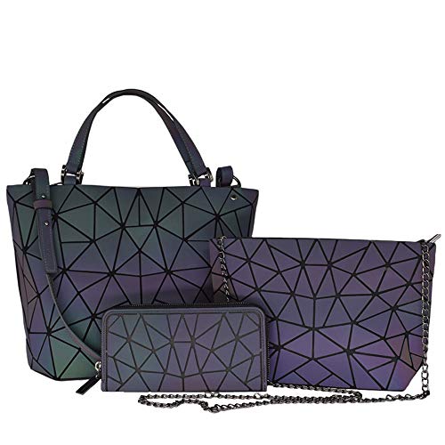 FOUCPOOM - مجموعة شنط الكتف للسيدات، محافظ وشنط يد مضيئة بتصميمات هندسية للنساء، شنط كروس لامعة وعاكسة، شنطة يد كبيرة توت ومحفظة, مجموعة من 3 حقائب، متعدد