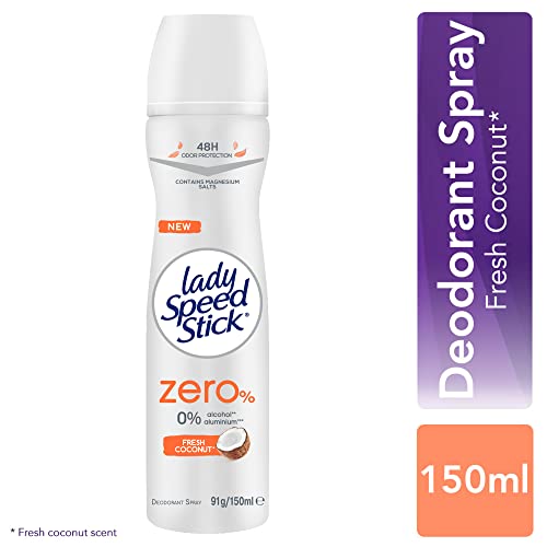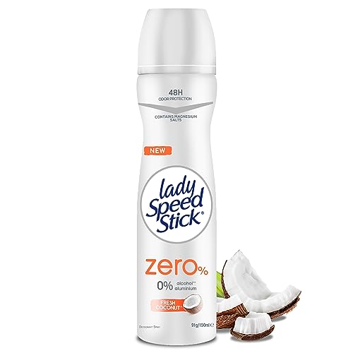 Lady Speed Stick - بخاخ مزيل عرق من ليدي سبيد ستيك برائحة جوز الهند المنعش للنساء، سعة 150 مل، خالٍ من الكحول والألومنيوم مع حماية 48 ساعة