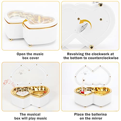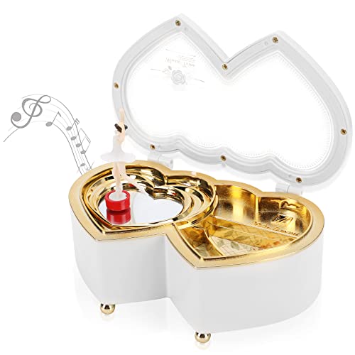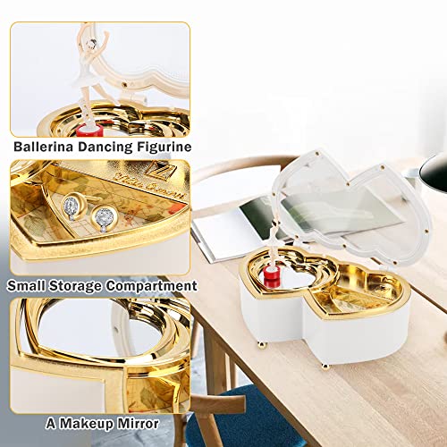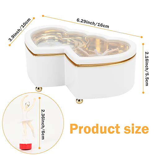 Laelr - ليلر صندوق مجوهرات موسيقي كلاسيكي لراقصة الباليه مع تخزين راقصة باليه منظم للقلائد والخواتم ومرآة لديكور غرفة النساء والفتيات أكريلونيتريل بوتادين ستايرين أبيض
