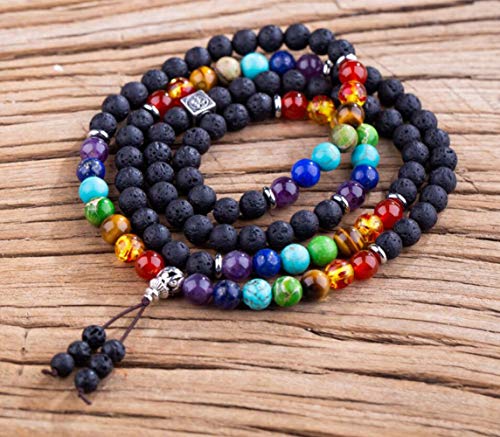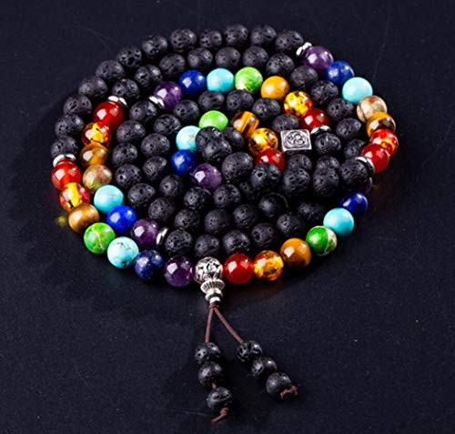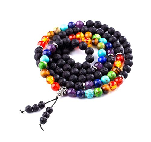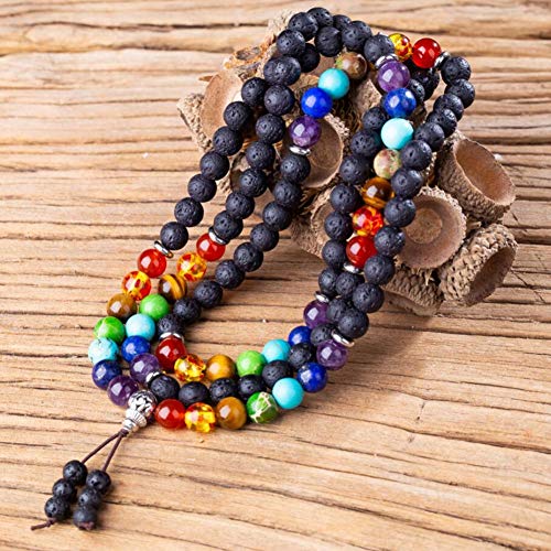 LAFATINA - اساور خرز باشكال المجموعة الشمسية من لافاتينا، مجموعة اساور شاكرا للرجال والنساء من الاحجار الكريمة واللافا، مناسبة لممارسة اليوجا, حجر