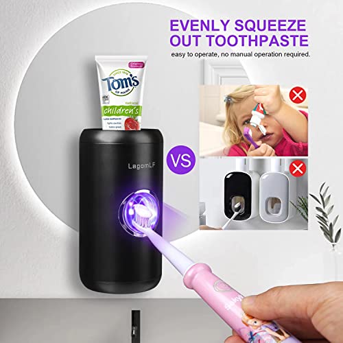 LagomLF - موزع معجون أسنان اوتوماتيك - موزع معجون أسنان كهربائي مزود بمستشعر ويعمل بالأشعة فوق البنفسجية - موزع معجون أسنان معقم يثبت على الحائط - مناسب للأطفال والكبار
