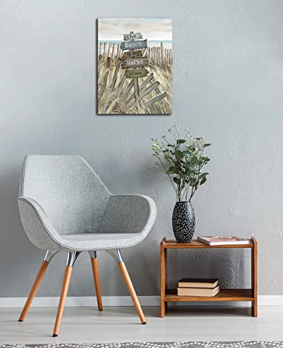 LAIART - لوحة فنية جدارية عصرية من القماش مطبوعة بمنظر البحر والشاطئ وسياج، لديكورغرفة النوم والحمام وغرفة المعيشة والمكتب المنزلي (بيتش-1، 11 بوصة × 15 بوصة)