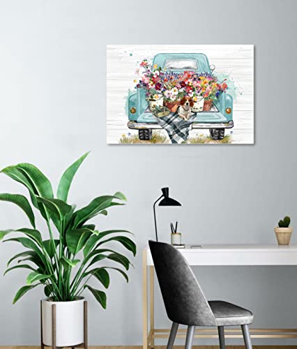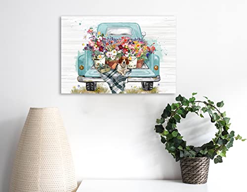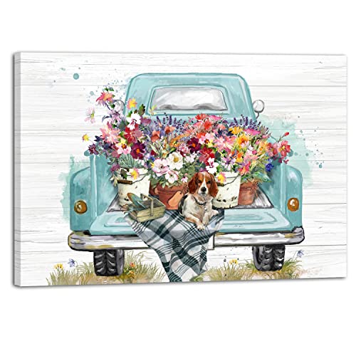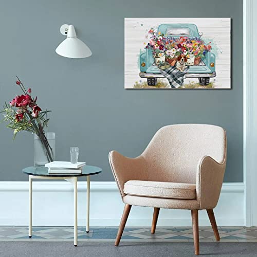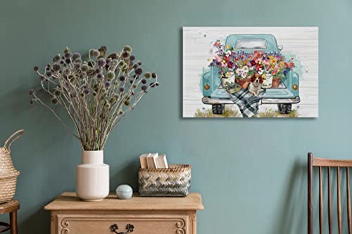 LAIART - لا ارت ديكور منزل المزرعة شاحنة قديمة مع زهور قماش مطبوعة جدار الفن صورة الحمام عمل فني حديث