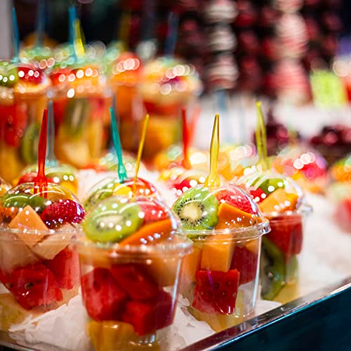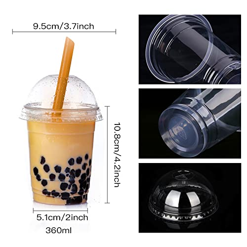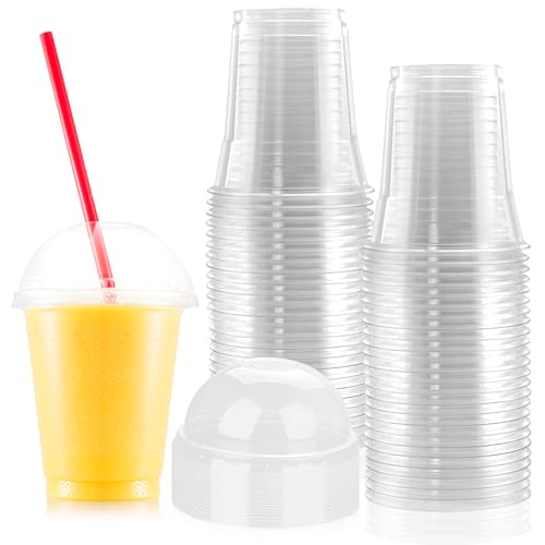 Lainrrew - اكواب بلاستيكية شفافة مع اغطية على شكل قبة للاستعمال مرة واحدة للمشروبات الباردة المثلجة والسموذي والقهوة والحليب المخفوق للحفلات والمناسبات والمطاعم 12 اونصة من لينرو 50