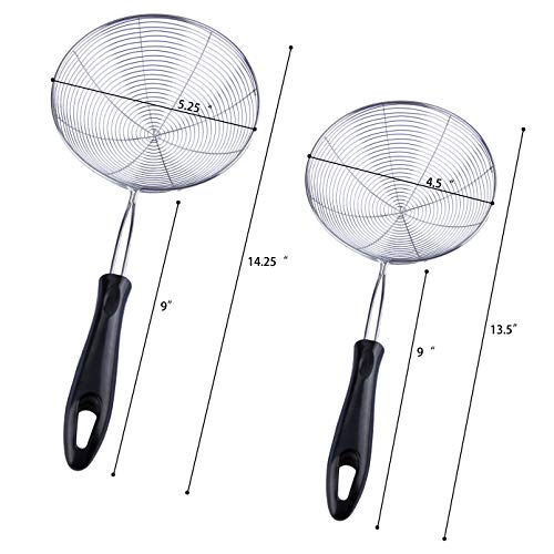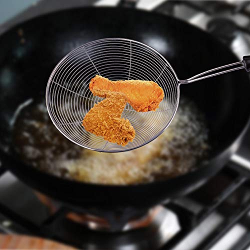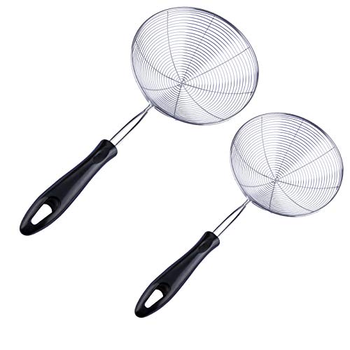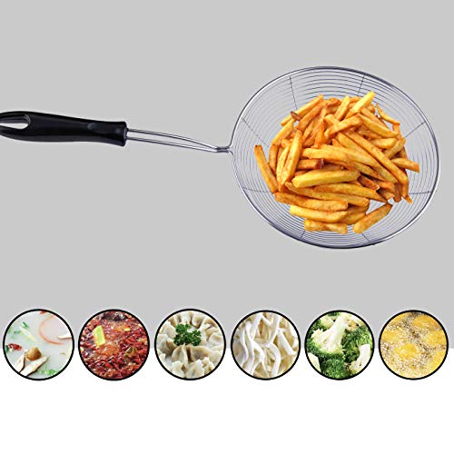- 🥣【الجودة】مثالية للاستخدام كمغرفة شبكية للقلي لطهي رقائق البطاطس وشرائح الدجاج والبطاطس المقلية وتصفية المكرونة والسباجيتي والخضروات والشوربة والمشروبات والشاي السائب والقهوة والزبادي والكينوا والأرز والزيت والمزيد، بمصفاة يدوية.
