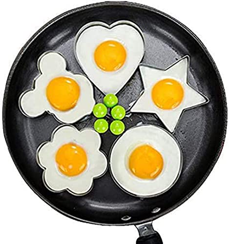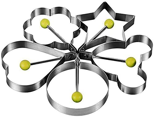 Lakobos - قالب لصنع فطائر البيض المقلي لاكوبوس بحلقات متنوعة مصنوع من الستانلس ستيل، للمطبخ وللفطور الانجليزي وللالبان وللكيك وللسندويشات، 5 قطع