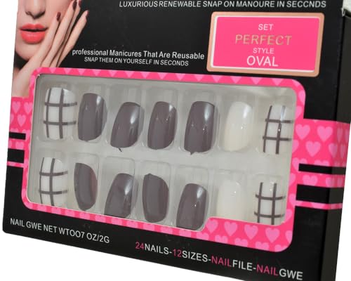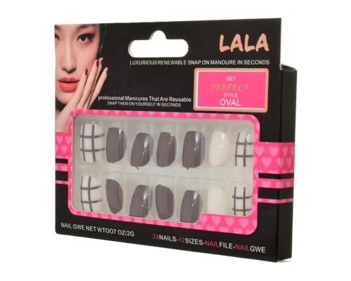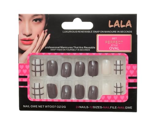 Generic - أظافر صناعيه للنساء 24 قطعه من LALA - بني وأبيض