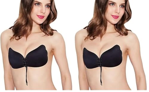 Spaceshoop - حمالة صدر لاصقة من السيليكون مع رباط قابل للتعديل للنساء والبنات - حمالة صدر بوش اب بدون حمالات بدون ظهر من السيليكون/القماش غير مرئية للنساء قابلة لإعادة الاستخدام من لالابرا، مقاس: C، أسود