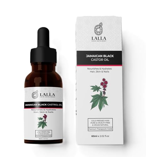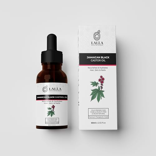LALLA - زيت الخروع الاسود الجامايكي العضوي للرموش والحواجب (60 مل)