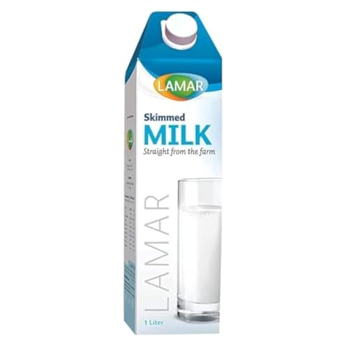 Lamar - لبن سائل خالي الدسم من لامار، بدون نكهة، عبوة كرتون من 6 قطع، سعة 1 لتر للقطعة