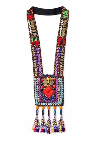 Generic - شنطة قلادة تقليدية مطرزة يدويا من لاماساتي - شنطة كروس ملونة مستوحاة من الشعبية مع شراشيب والعملات المعدنية