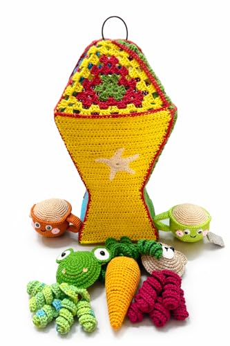 Generic - طقم هدايا رمضان كروشيه مصنوع يدويا من لاماساتي - فانوس مزخرف كبير متعدد الالوان مع العاب كروشيه (35 سم)