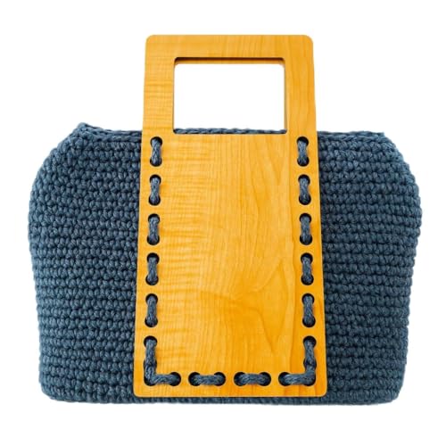 Generic - شنطة يد كروشيه يدوية الصنع للنساء من لاماساتي - شنطة يد بحبل قطني ازرق مع مقبض خشبي وتصميم منظم