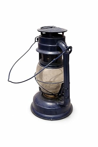 Generic - فانوس زيت معدني بنمط عتيق من لاماساتي - مصباح كيروسين ازرق مع مدخنة زجاجية (25 سم)