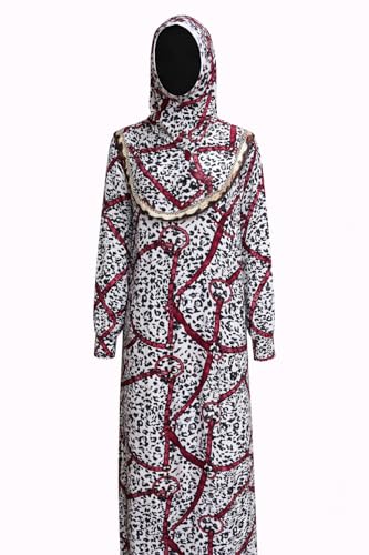 Generic - عباية حريرية مطبوعة للنساء من لاماساتي - نمط ابيض واسود مع تصميم سلسلة حمراء - فستان ماكسي انيق محتشم