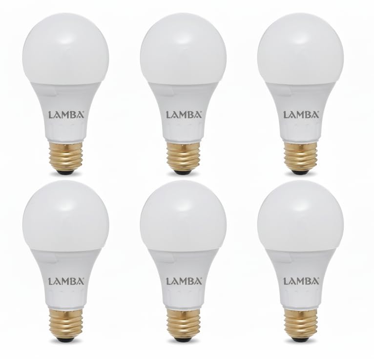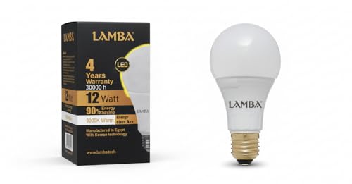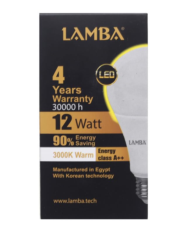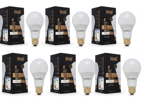 LAMBA - مجموعة لمبات ليد 12 وات A65 من LAMBAموفرة للطاقة بنسبة 90%، عمر افتراضي 30,000 ساعة، كفاءة A++، بضوء دافئ ( 6 قطع) ، اصفر