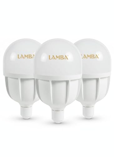 LAMBA - مجموعة لمبات ليد 35 وات T100 من LAMBAموفرة للطاقة بنسبة 90%، عمر افتراضي 30,000 ساعة، كفاءة A++، بضوء ساطع ( 3 قطع) ، ابيض