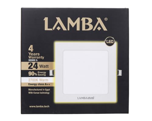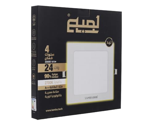 LAMBA - مجموعة كشافات ليد داخلية بانل مربع 24 وات RSF-800024 من LAMBAموفر للطاقة 90% ، العمرالأفتراضي 30,000 ساعة ، بضوء دافئ 2700K (3 قطع) ، ابيض