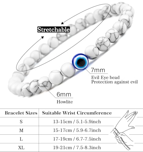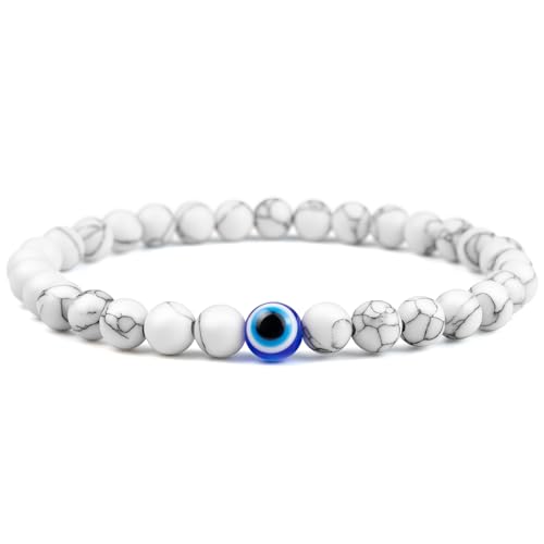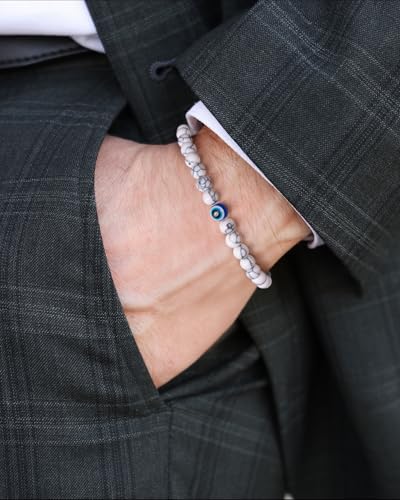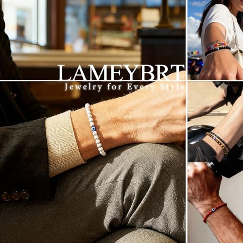 Lameybrt - سوار عين الحسد 6 ملم من لاميبرت، اساور خرز طبيعية قابلة للتمدد وقابلة للتعديل للرجال