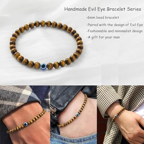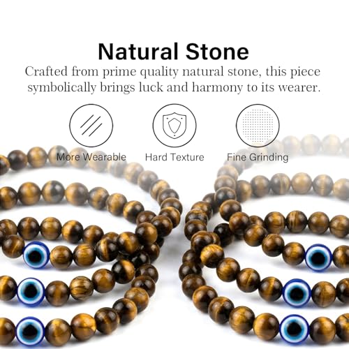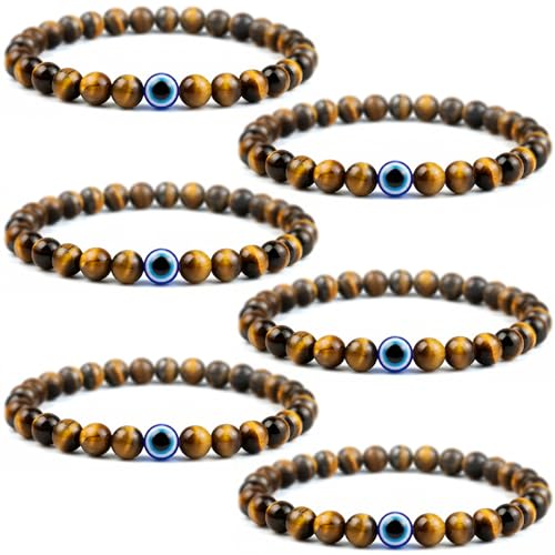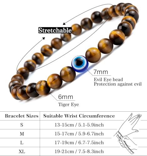 Lameybrt - مجموعة أساور عين الحسد المرنة من حجر العقيق الطبيعي مع دلايات قابلة للتعديل للرجال والصديق كهدية للأولاد من لاميبرت، سوار مطاطي للرجال 6 ملم (S05 عين النمر)