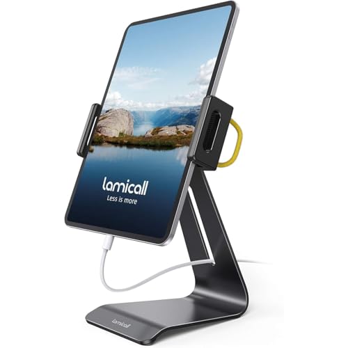Lamicall - حامل تابلت وموبايل قابل للتعديل بتصميم يونيفرسال دوار 360 درجة، حامل لجهاز سويتش والتاب وآيفون والتابلت مقاس 4.7-13 بوصة من لاميكال